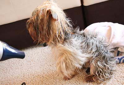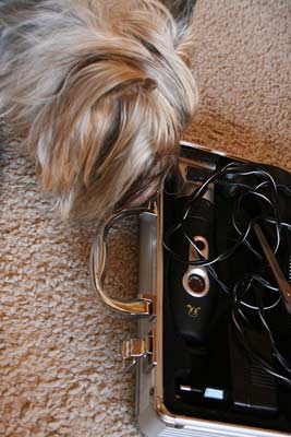 Als ich trocken war, dachte ich: Juhu, ich hab es geschafft! Aber nichts da: was holt Mama denn jetzt noch? Och nö!!! Die Schermaschine!!!