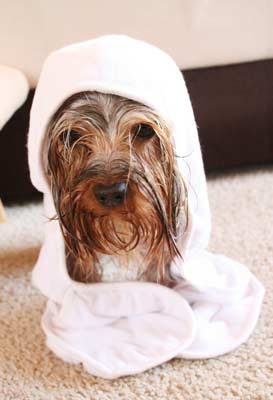 Zum Glück war es dann dennoch recht schnell vorbei. Mama packt mich in einen kuscheligen Bademantel und trägt mich aus dem Bad.