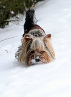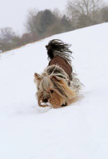 Mit meiner neuen schicken Jacke durfte ich so richtig im Schnee herum tollen.