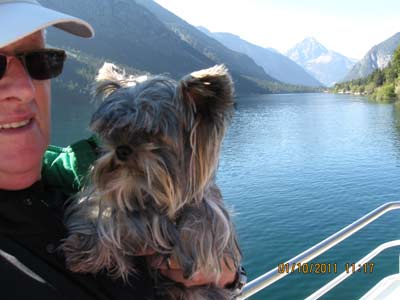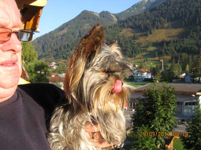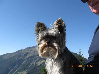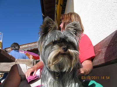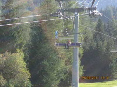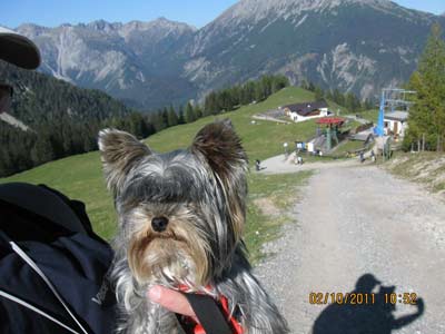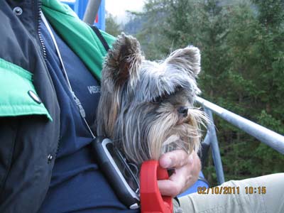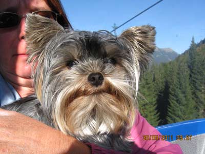 Frauchen und ich allein im Sessellift